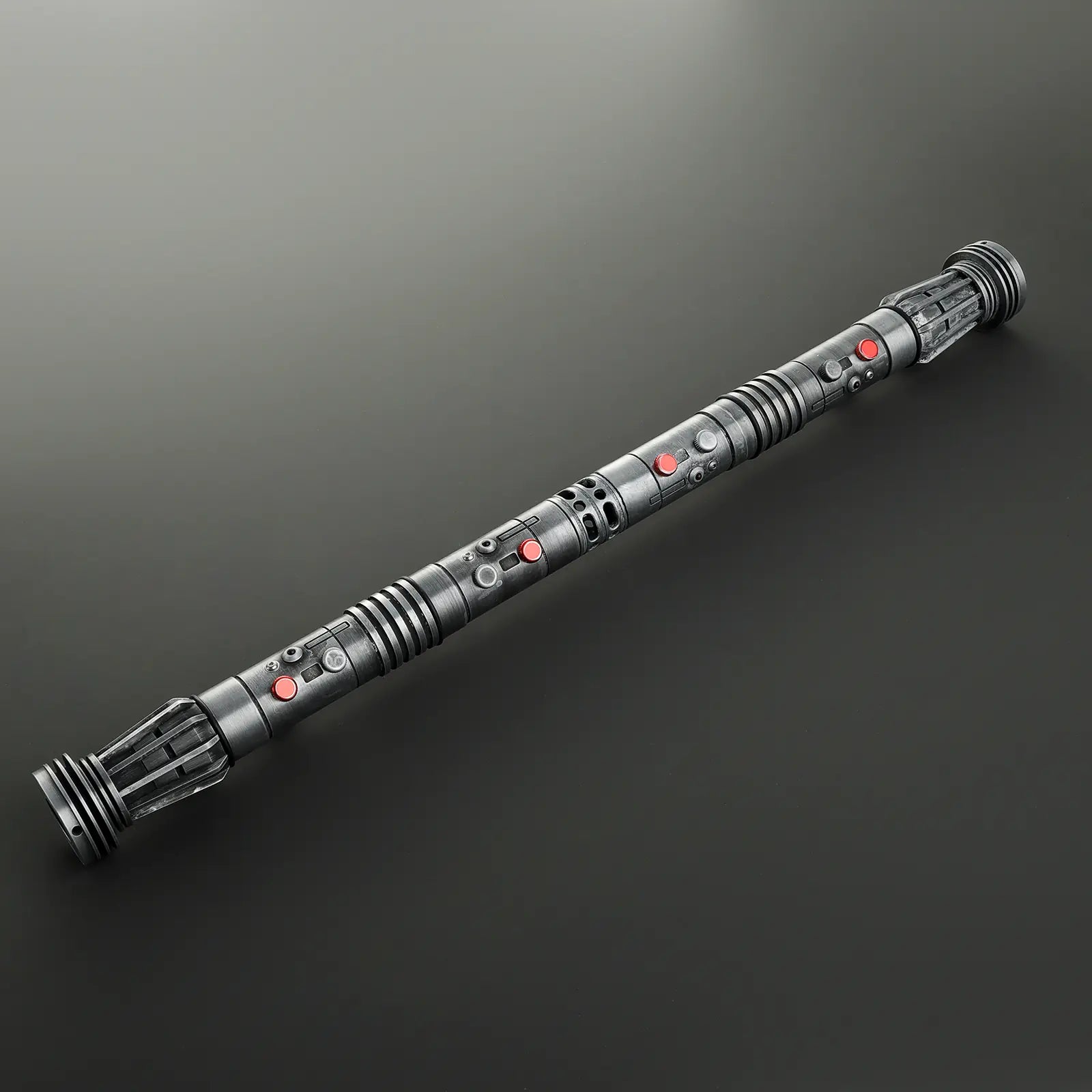 With two blazing red blades, a full metal hilt, and brutal sound design, this blade doesn’t whisper the dark side — it screams it.
